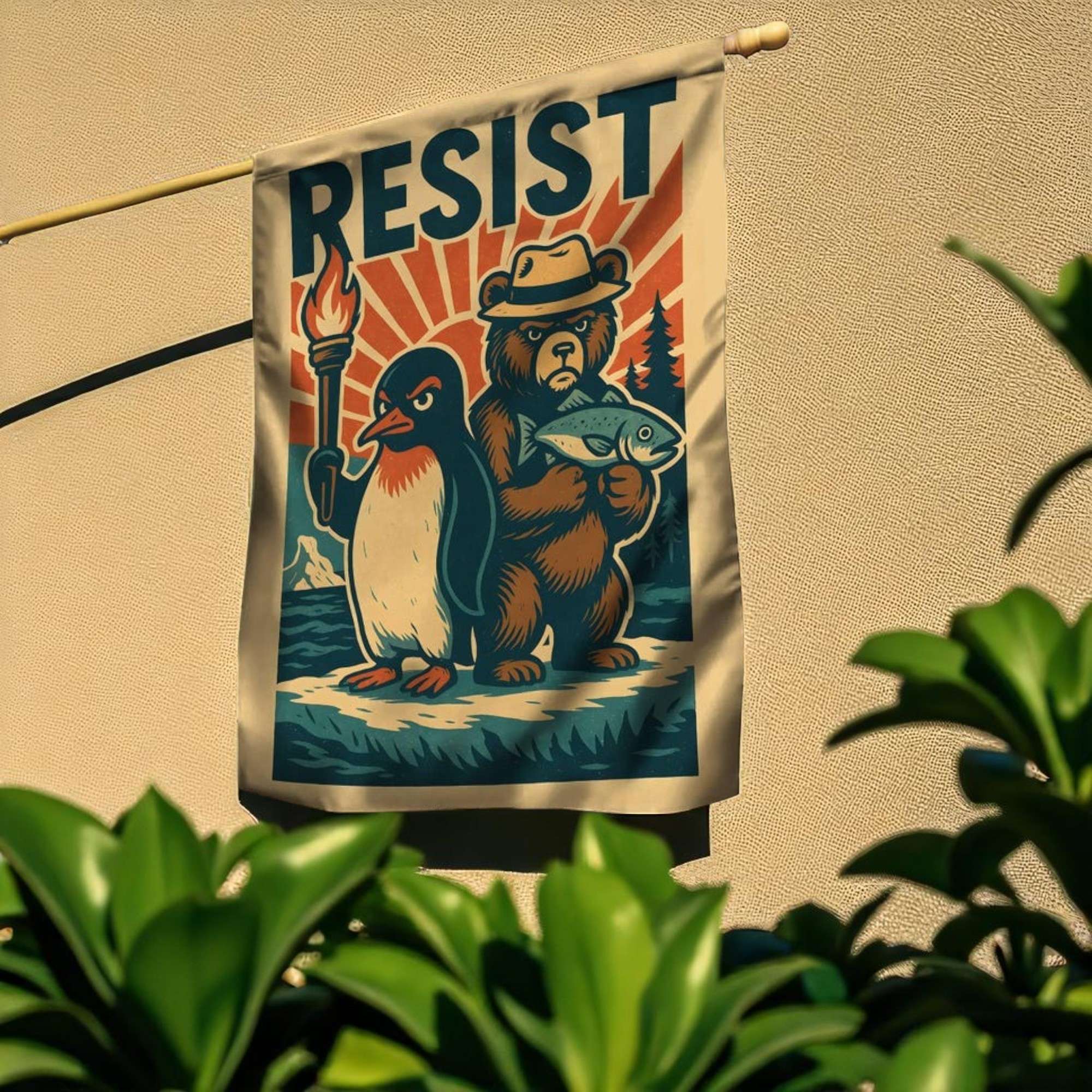 Powerful Bears Penguins RESIST Flag for Your Garden