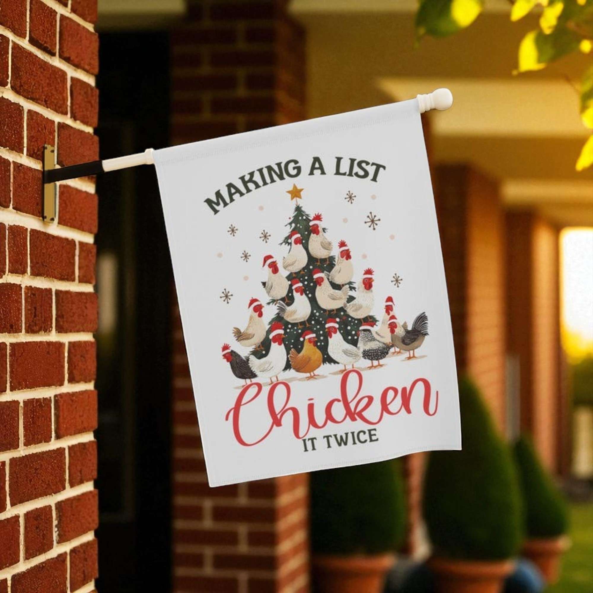 Add a dash of humor to your holiday decor with this Funny Christmas Flag, the perfect way to welcome guests with festive charm and a farm-inspired twist. Whether you’re a chicken lover or simply enjoy quirky decorations, this delightful yard flag brings joy and laughter to your seasonal setup.