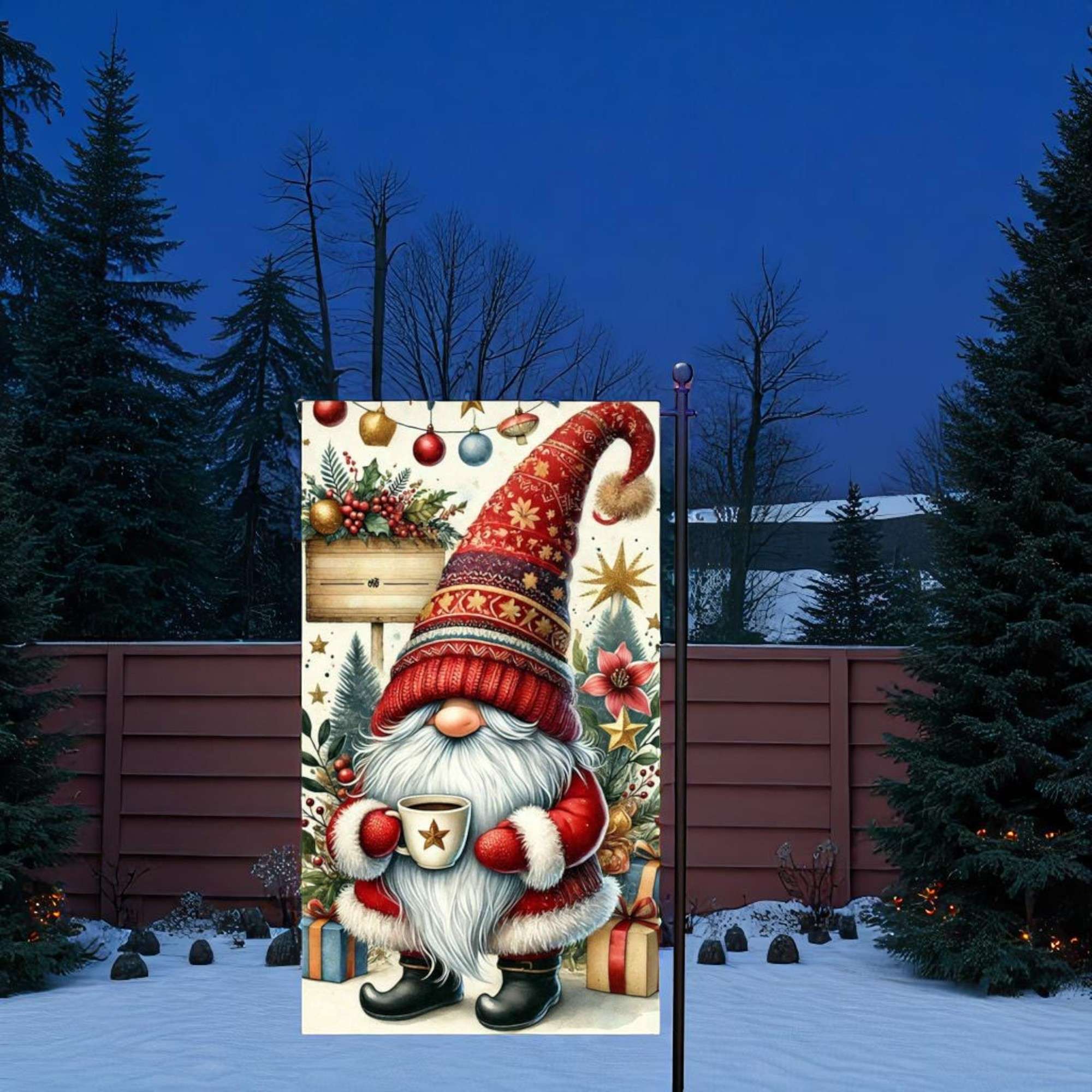 Whether you’re welcoming guests or enjoying quiet moments outdoors, this gnome-themed garden flag brings warmth and joy to your space. Explore more festive options to complete your decor by visiting our Christmas Flag collection.