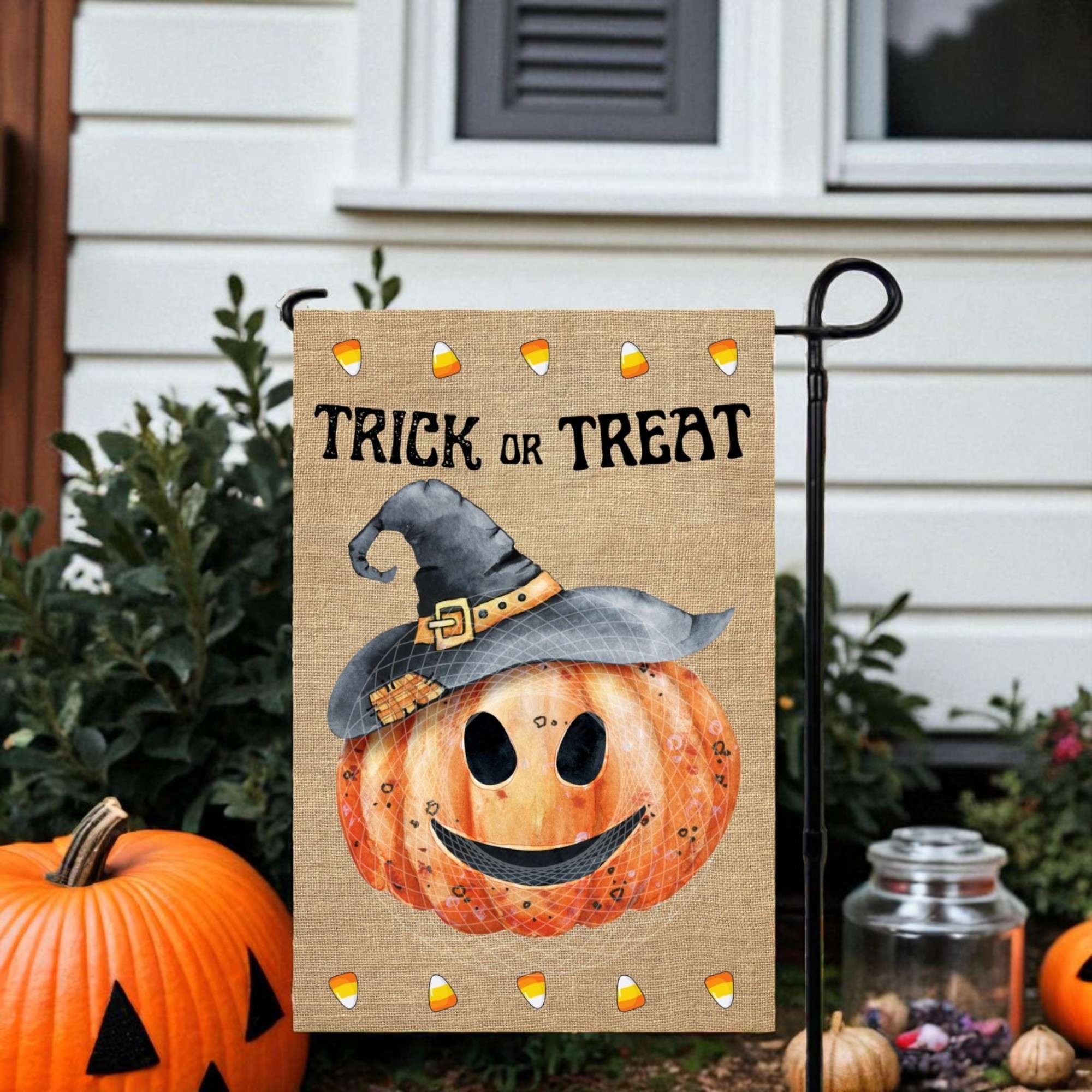 Celebrate spooky season in style with our vibrant Halloween Flag, featuring a playful pumpkin and Trick or Treat design that adds charm and festive energy to your outdoor decor. Perfect for creating a fun, welcoming vibe for guests and trick-or-treaters alike.