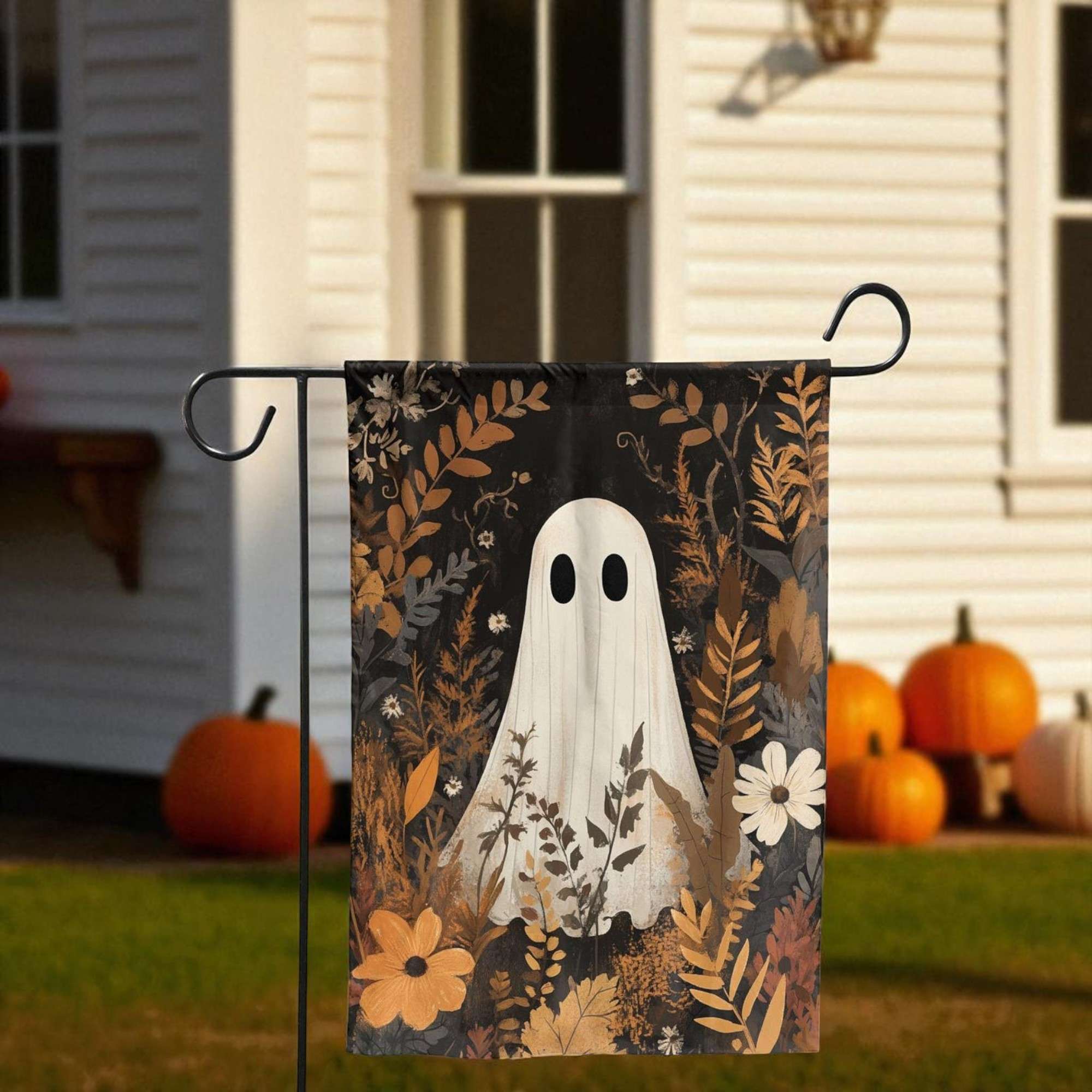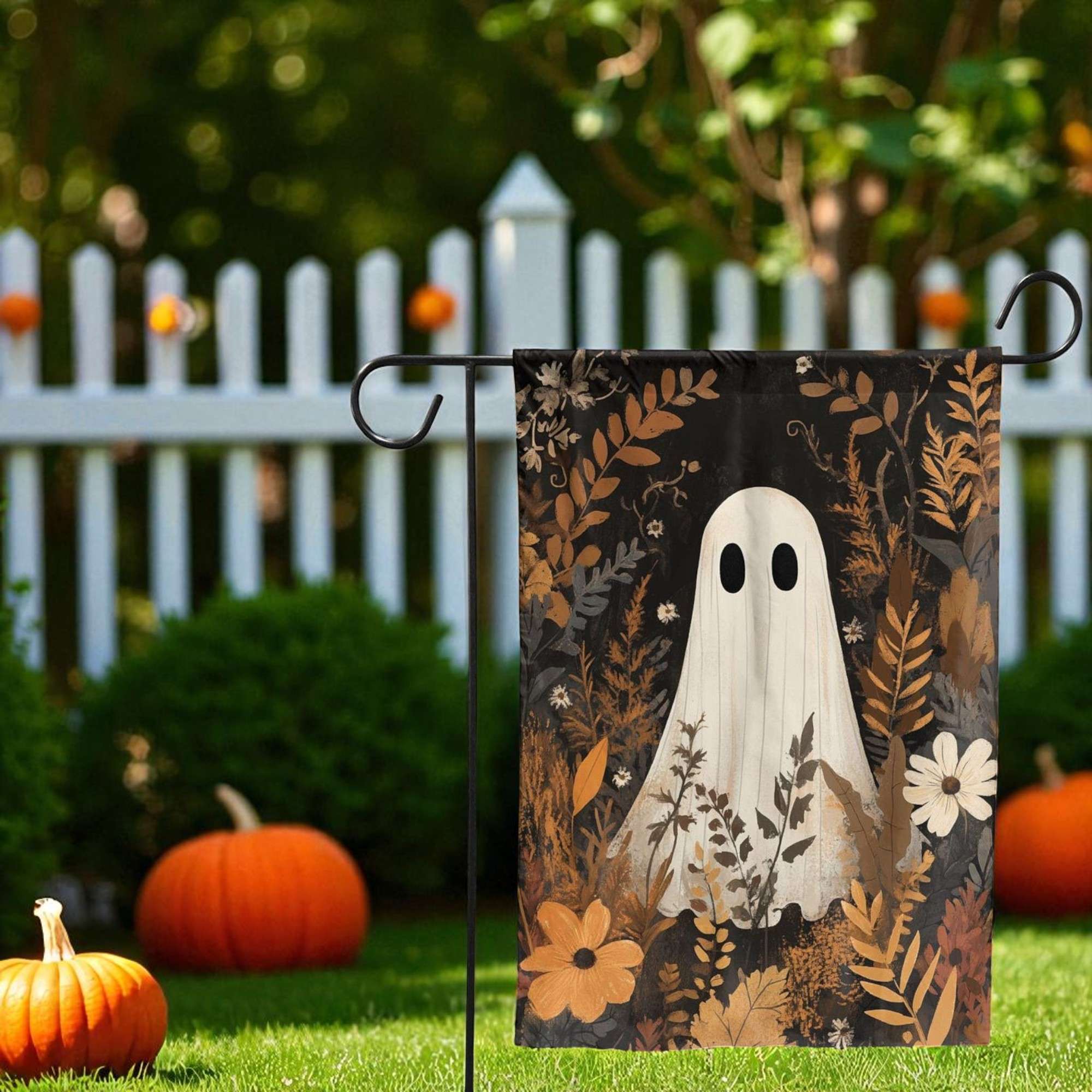 Halloween Garden Flag with Neutral Ghost Design for Stylish Fall Decor