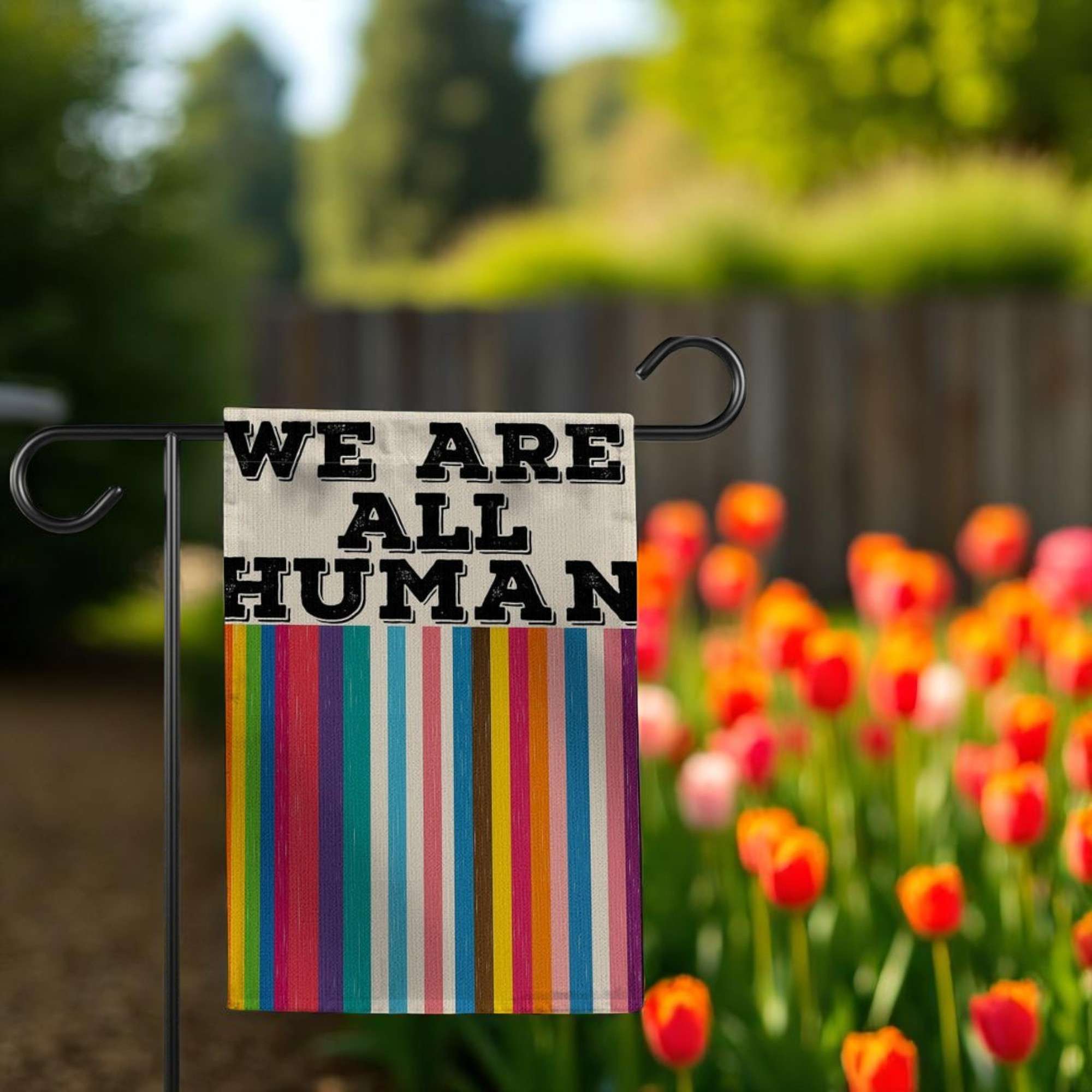 Pair this Human Garden Flag with a matching LGBT Flag to create a cohesive, pride-filled outdoor display that stands for love and respect.