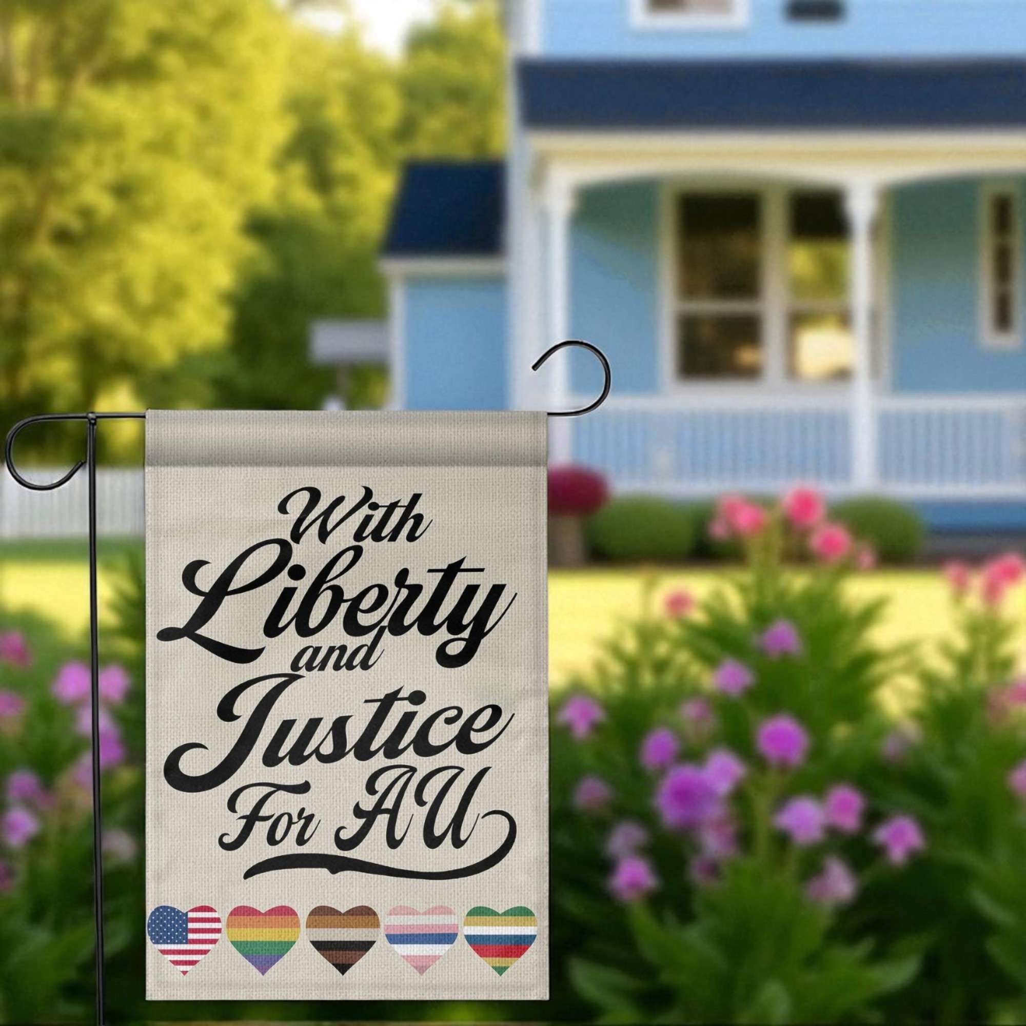 Expertly crafted to combine LGBTQ+ pride with patriotic spirit, this outdoor garden flag is more than just decor—it’s a declaration of values. Built for lasting impact, it’s perfect for all seasons and occasions, from Pride Month to everyday affirmation of justice and liberty.