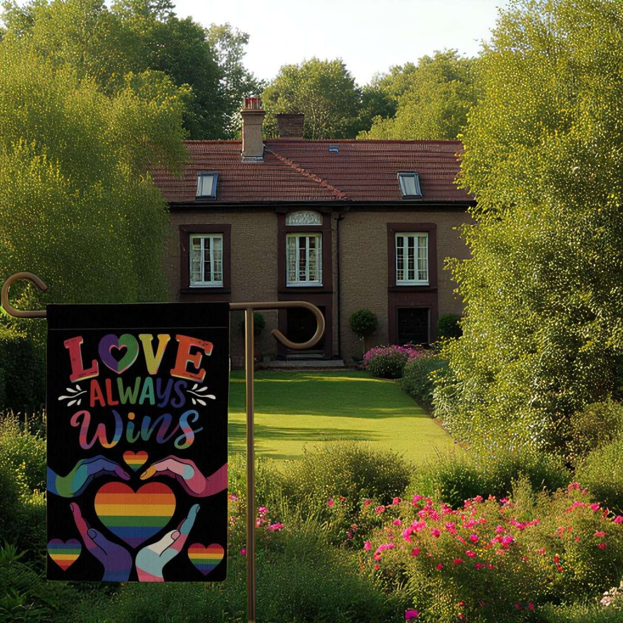 Order your Love Always Wins Garden Flag today and let your yard be a beacon of inclusive love and unity.