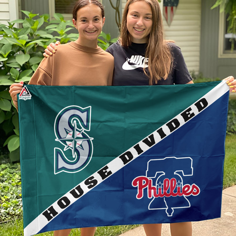 Mariners vs Phillies House Divided Flag, MLB House Divided Flag